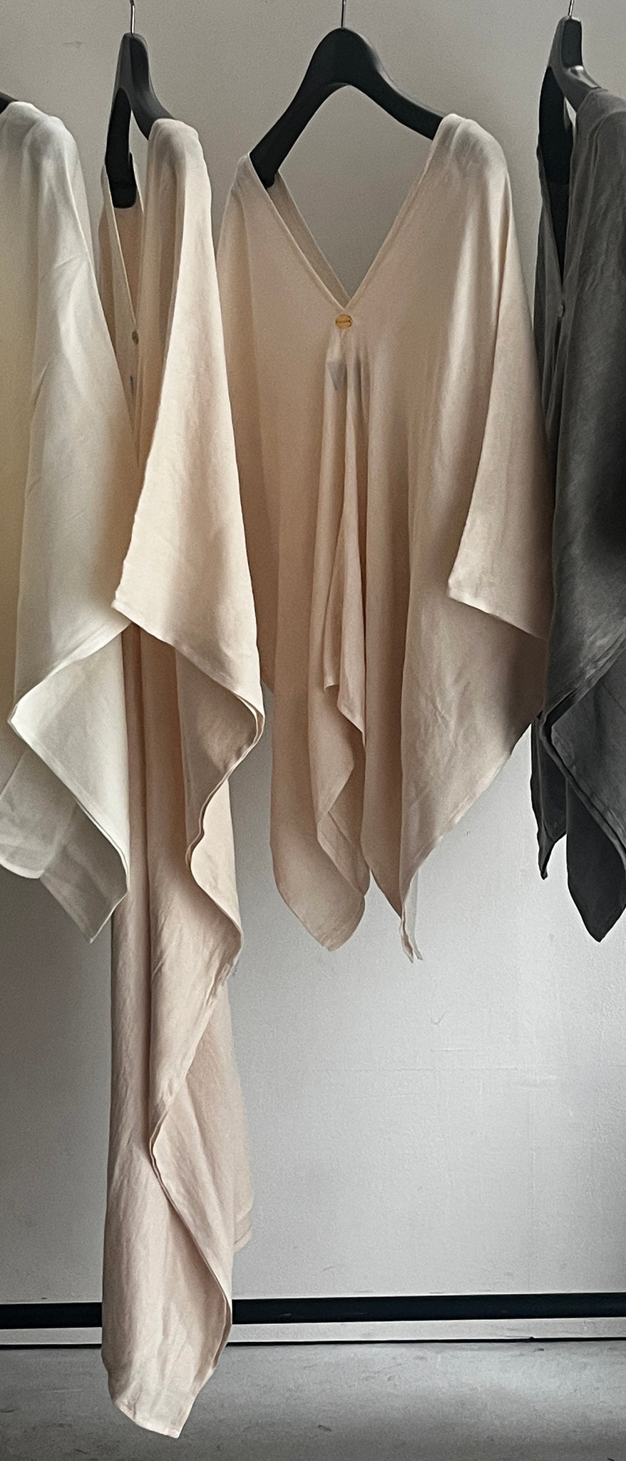リネン&レーヨンの優しい肌触りの生地をたっぷり使用したドレス。